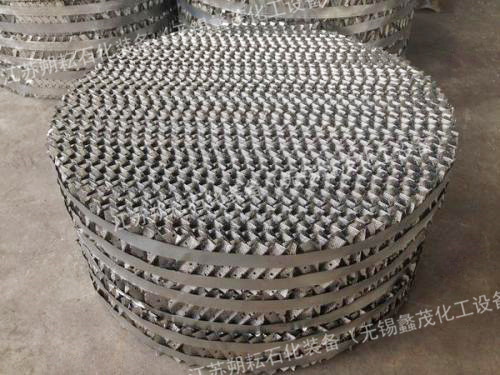 我廠專業(yè)生產(chǎn)新型高效波紋規(guī)整填料及散堆填料,可采用不銹鋼、銅、鋁、純鈦、鉬二鈦等材質(zhì)制作。在香料、農(nóng)藥、精細(xì)化工、石油化工等領(lǐng)域得到廣泛應(yīng)用。 規(guī)整填料分為網(wǎng)孔、絲網(wǎng)、孔板、壓延孔板等。